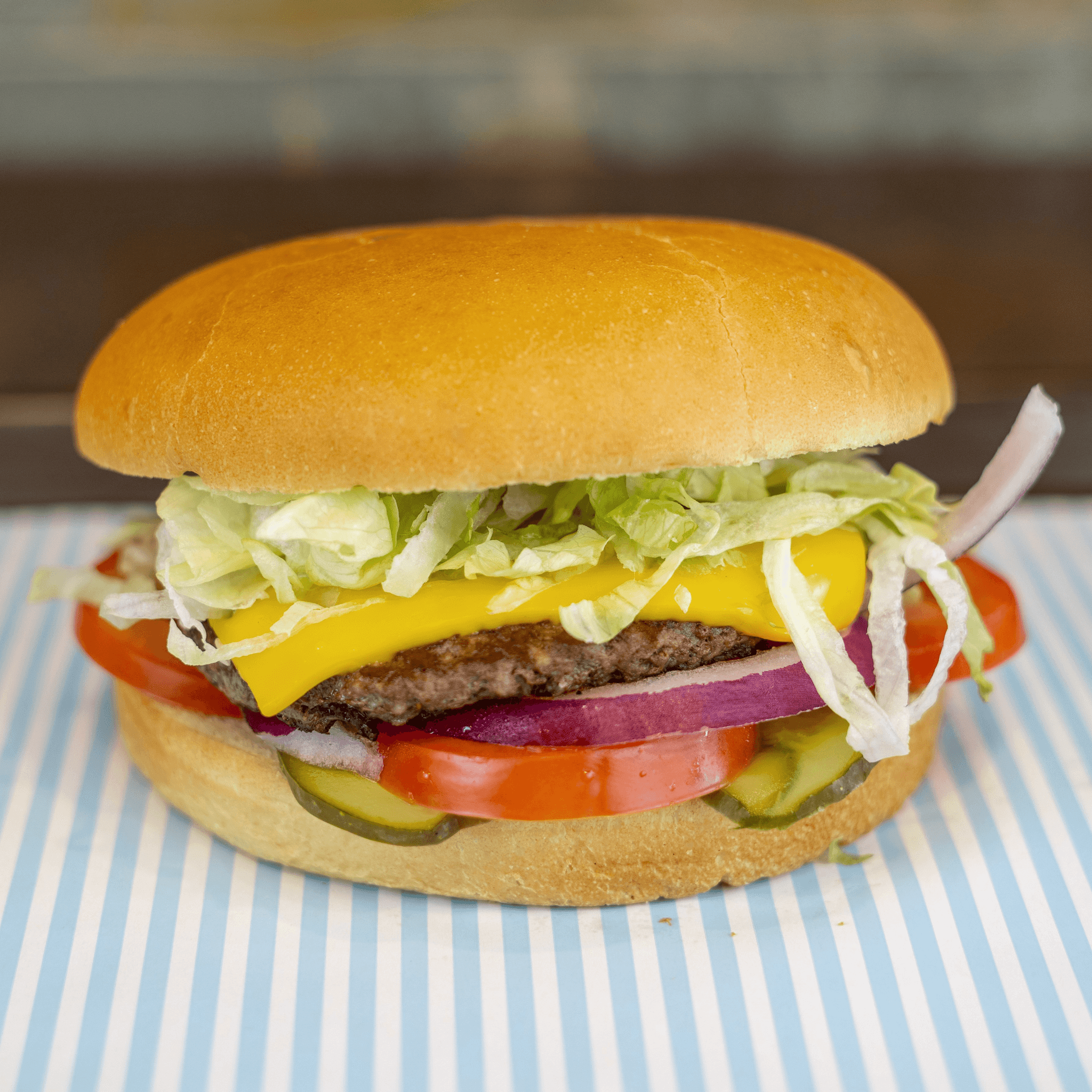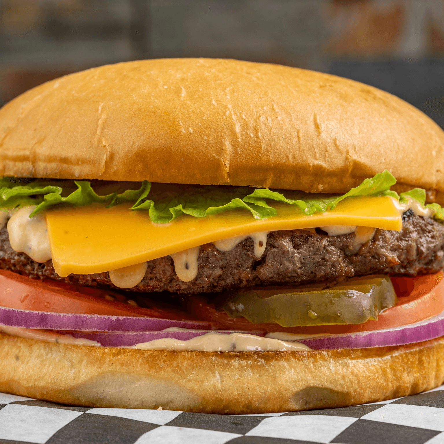 4 oz Angus beef burger patty with our signature dressing, tomatoes, pickles, onions, lettuce and cheese