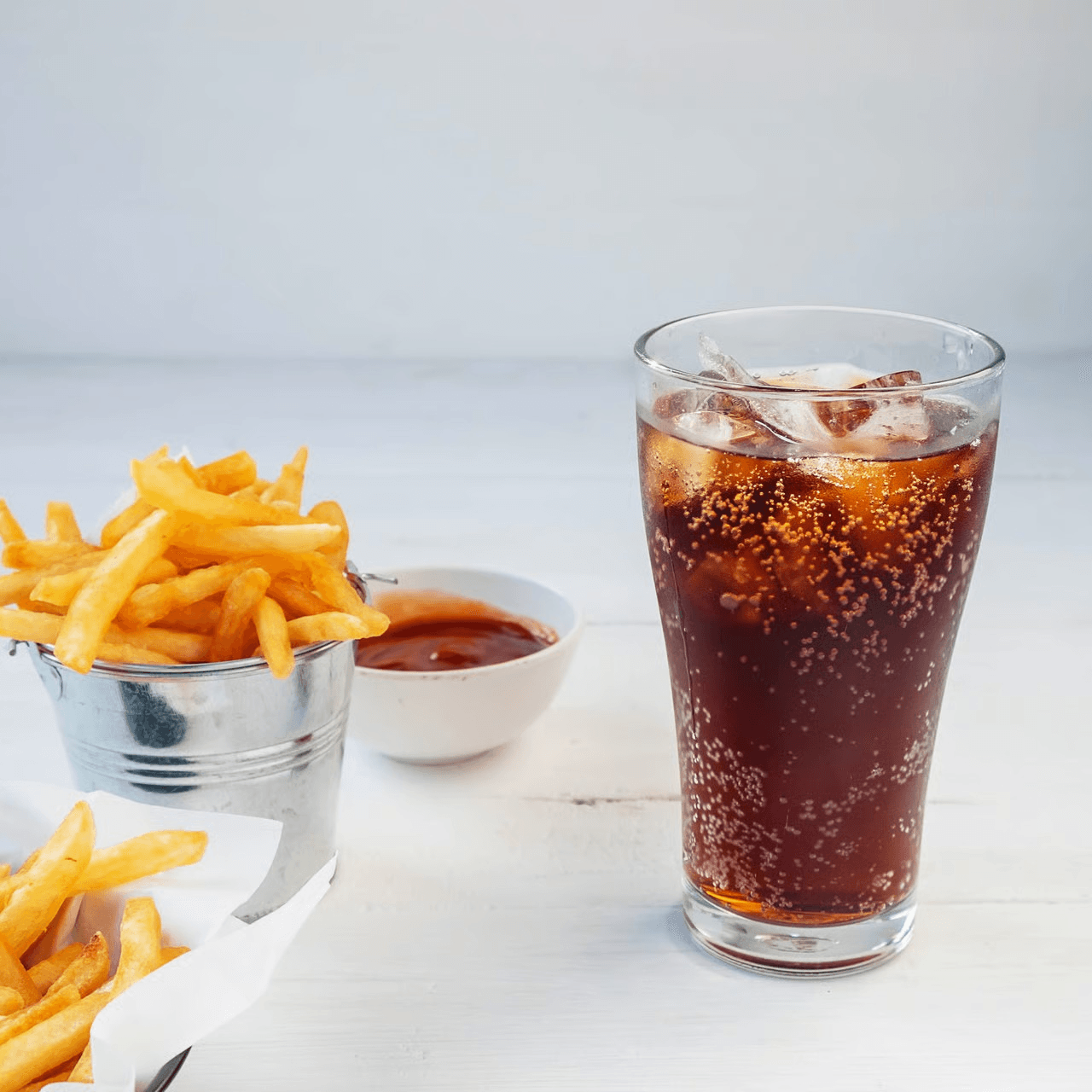 Bag of chips (classic, BBQ & sour cream) and soda can