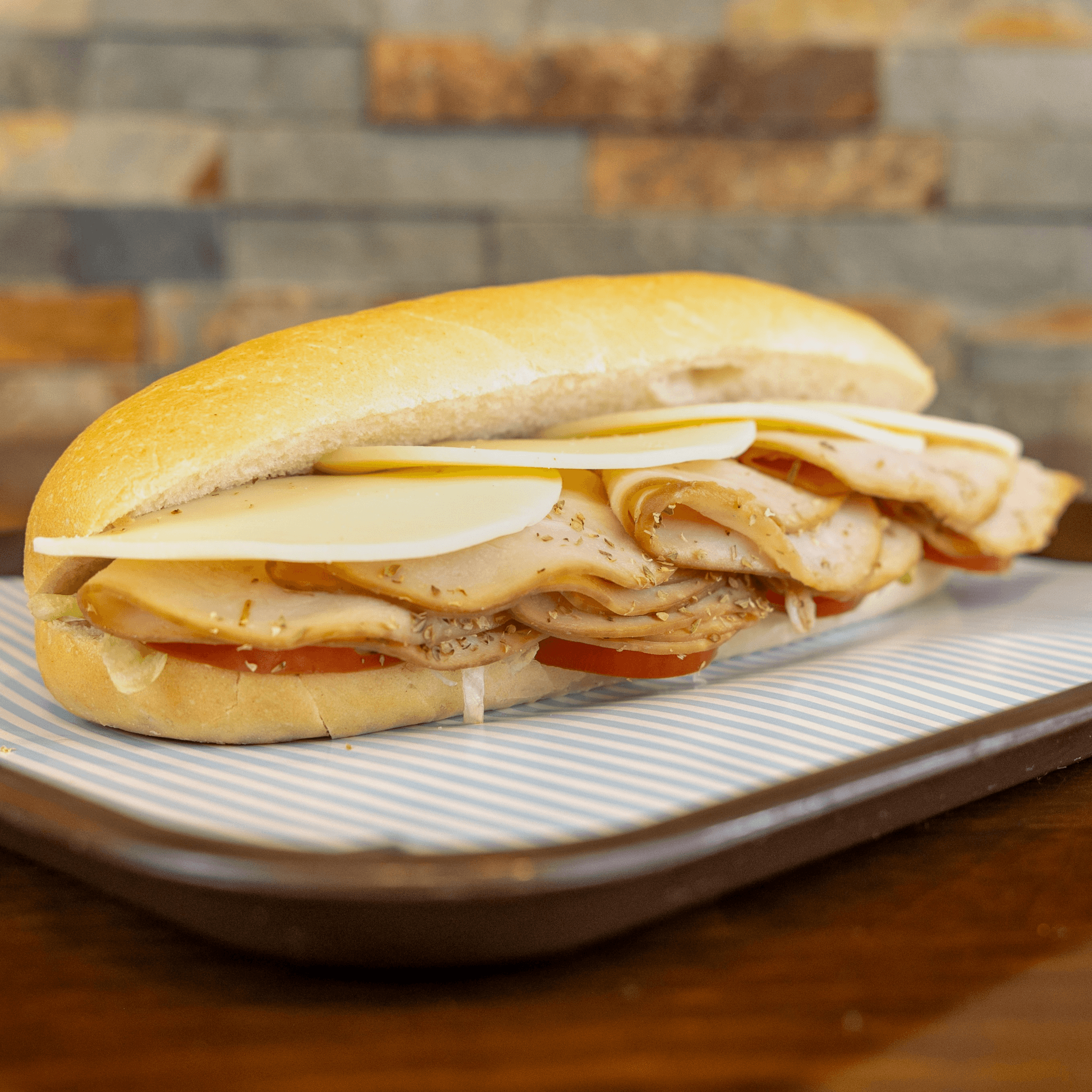 Smoked turkey breast, layered with provolone cheese, lettuce, tomatoes, finished with a sprinkle of oregano and our signature dressing