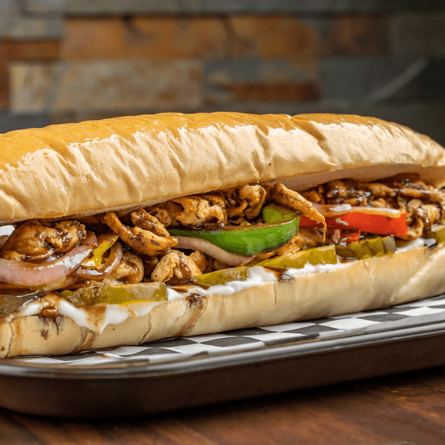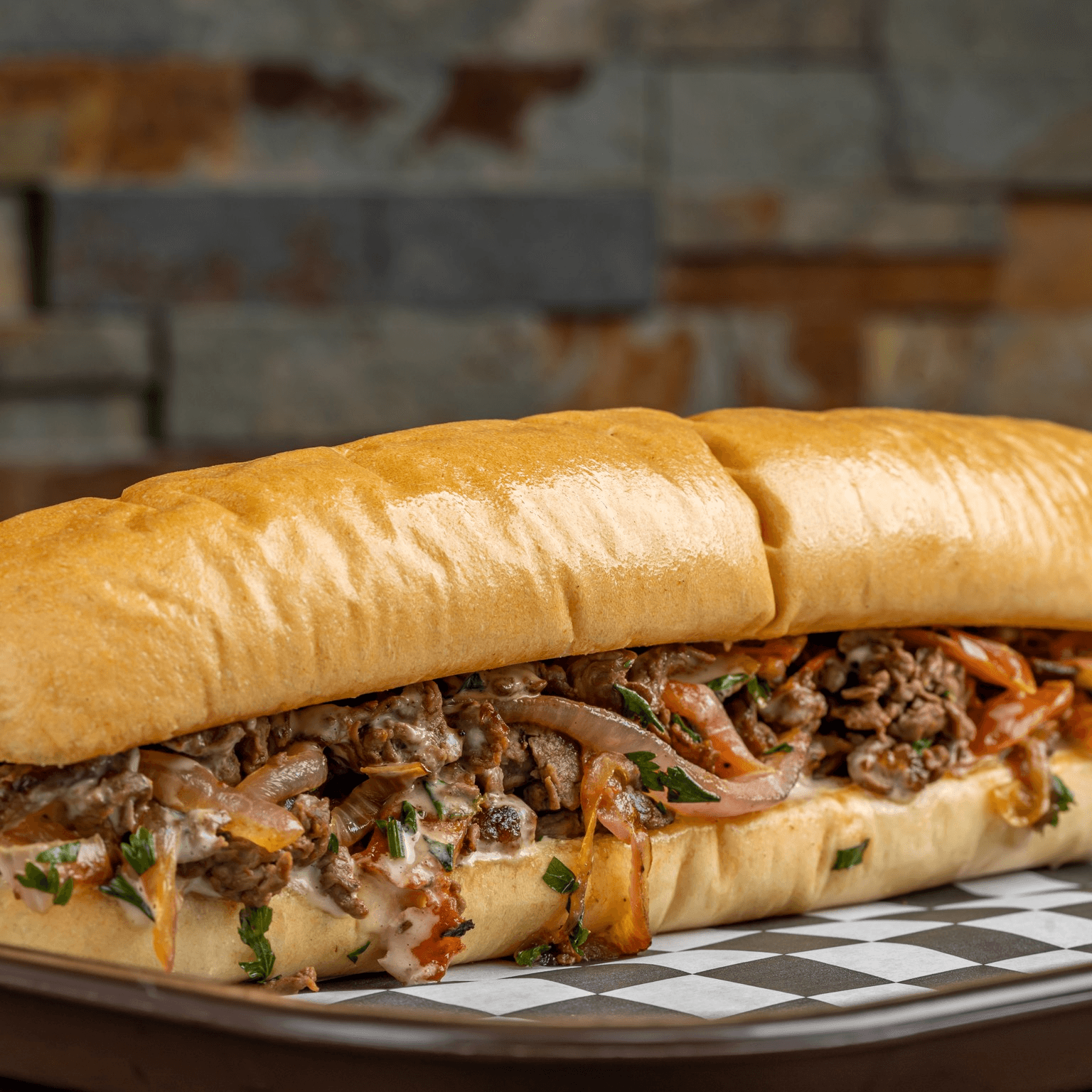 Tender Angus Philly beef, sautéed with caramelized onions and mixed bell peppers, topped with American cheese