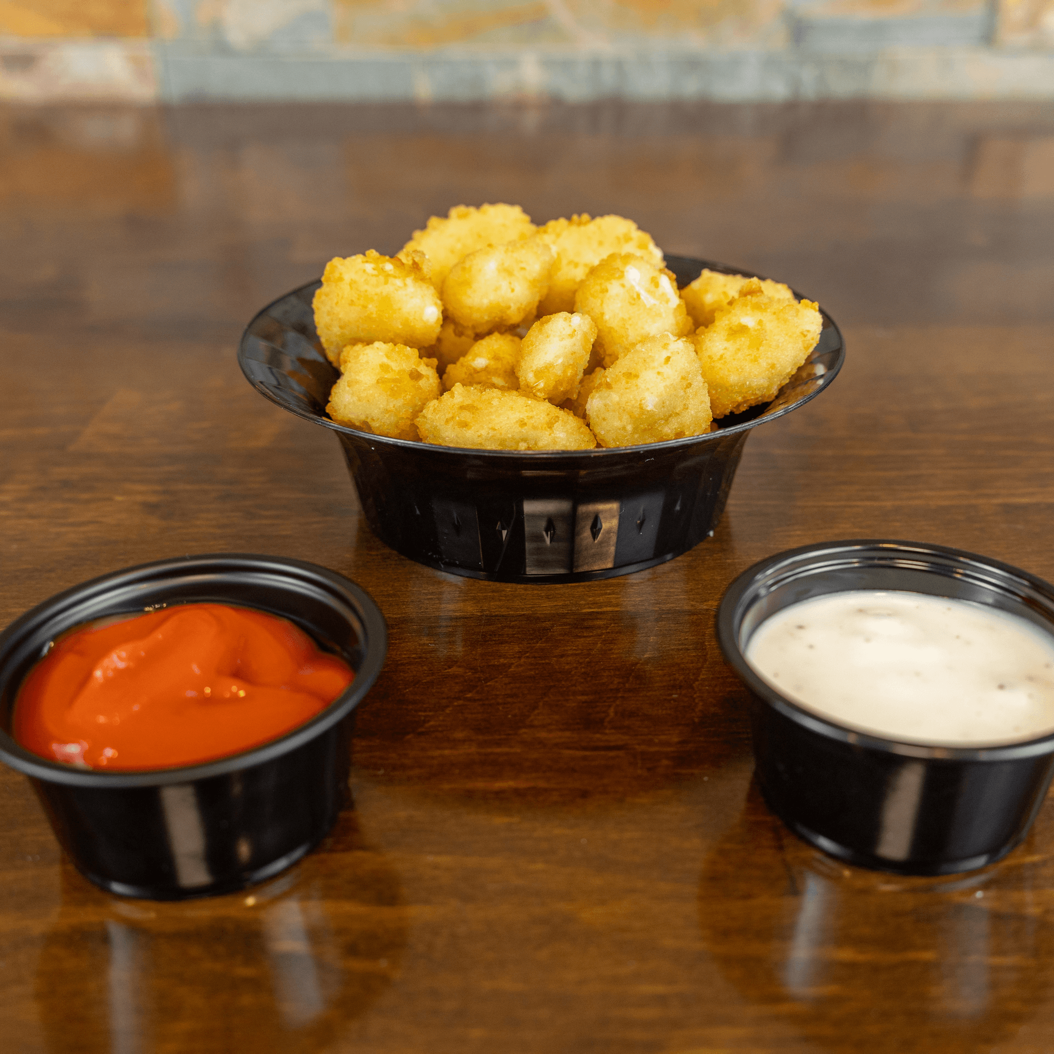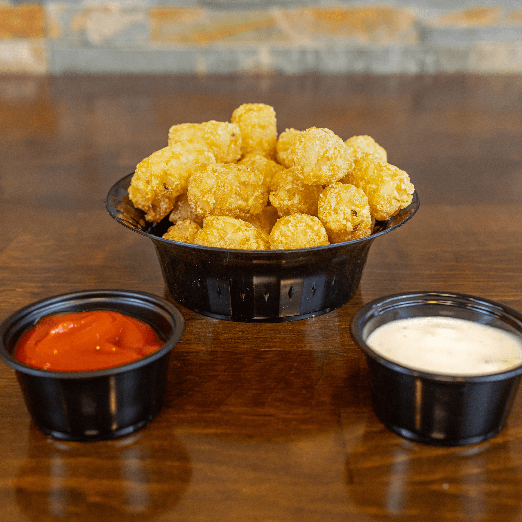 Golden-brown, crispy potato tots, perfectly seasoned with a blend of herbs and spices for a delightful crunch in every bite