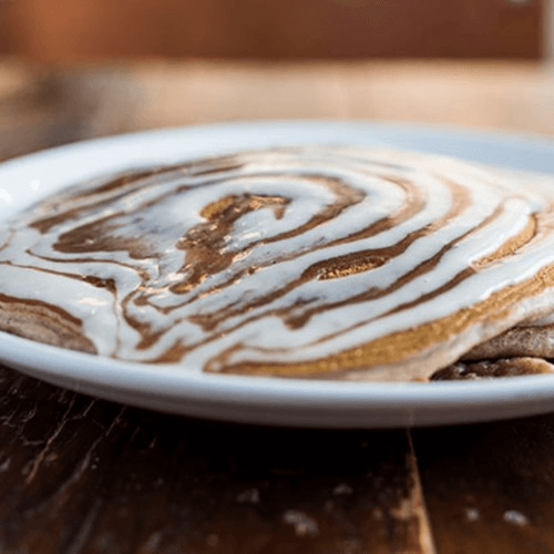One large cinnamon pancake with gooey cinnamon syrup, vanilla icing & cinnamon sugar.