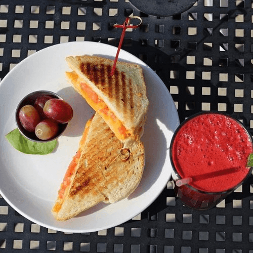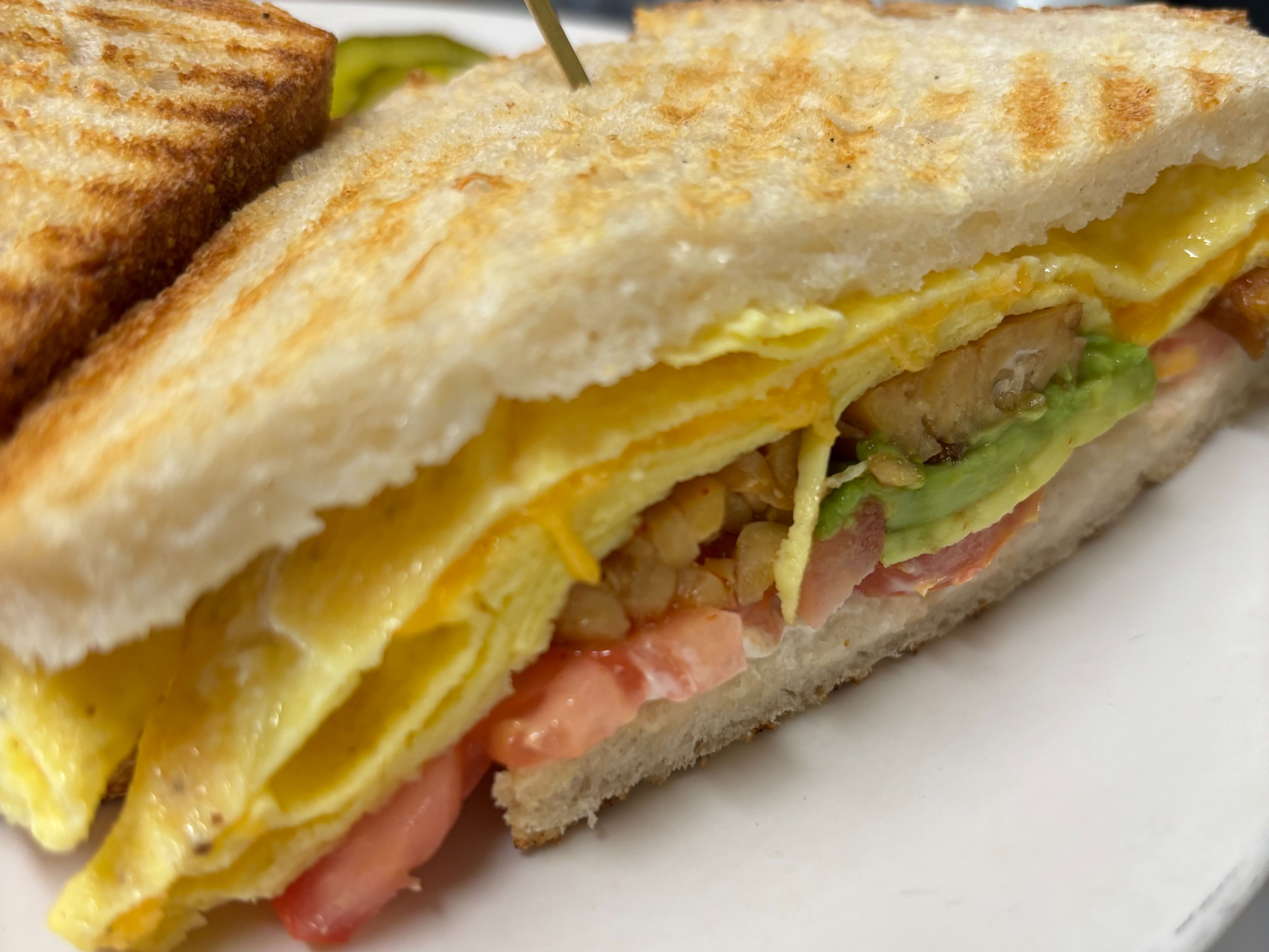Choice of eggs or tofu scramble & cheese with Vegenaise on toasted sourdough. Add veggies, avocado, tomatoes, tempeh bacon, spinach if desired.